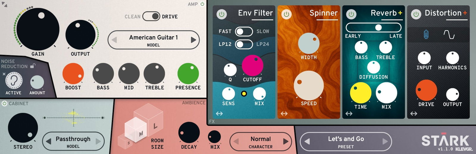 Die Features con STARK Amp Simulator sind: 12 Verstärker mit Clean- und Overdrive-Kanal, 10 Cabinets in verschiedenen Größen und Sounds, FX Board mit vier Steckplätzen (14 Effekte verfügbar), Sechs Raumtypen mit Konfigurationsmöglichkeiten, Zahlreiche Werkspresets, die die meisten Genres und Stile abdecken und Ultra niedrige Latenz.