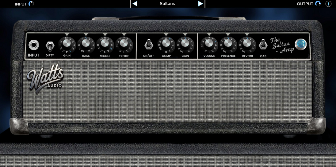 "Der Sultan Amp ist ein virtueller Verstärkersimulator (kein physischer Verstärker) für den Einsatz in einem Digitale Audio-Workstation (DAW). Inspiriert von den legendären Tönen von Mark Knopfler, John Mayer, Jimi Hendrix und SRV verfügt es über einen klassischen Kompressor, subtilen Hall, zwei Kanäle und einen authentischen Tonstapel und liefert Vintage-Sound in einer benutzerfreundlichen Oberfläche.